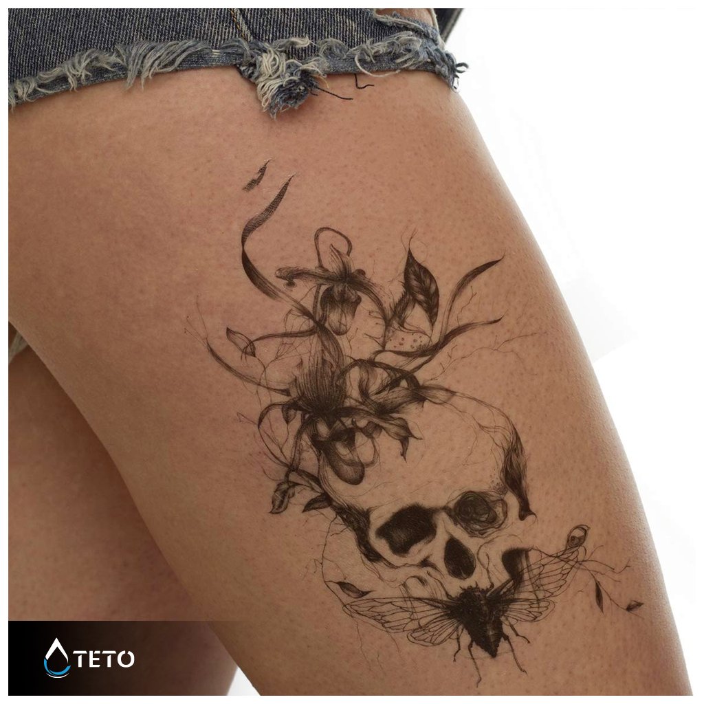 Totenkopf mit Blume